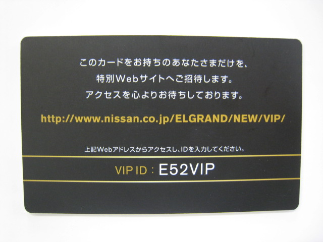 カタログにVIPカードが付いております。”あなたさまだけを・・・・”のコピーに惹かれます。このパスワードで新型の全容がわかる!かも?