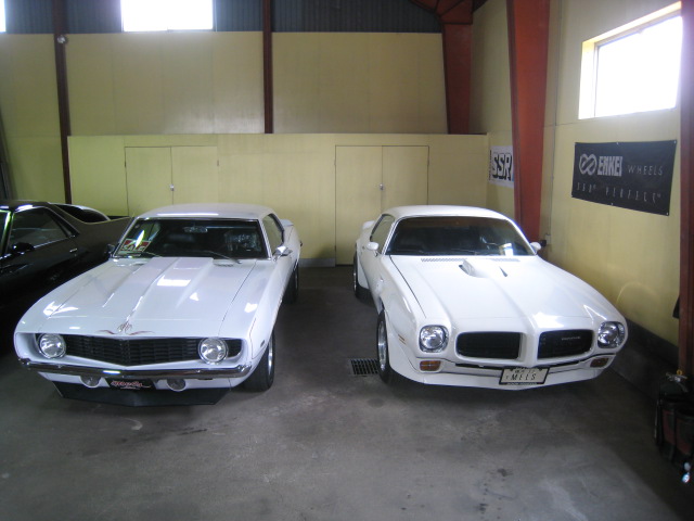 思い立ったら吉日。先日、お預かりしている69カマロを見ていたら、ムショーに倉庫の奥にあるファイヤーバードと並べてみたくなりました。3人掛かりで引っ張り出し(残念ながらエンジンは掛りませんでした・・・。)ホコリだらけのファイヤーバードを洗車して、しばし眺めて見る・・・・・。